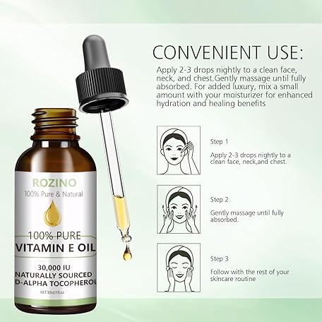 Thông tin sản phẩm Vitamin E Oil, Organic Vitamin E Oil for Cosmetics, Organic Vit E Drops Oil for Scars, Face & Body, Natural Ingredients, Firming Plump Skin, 30 ml