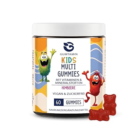 Vitamin Gummy Bears Children - 60 Vegan Vitamin Gummies with 12 Vitamins & Minerals such as A, C, D3, E, B Complex, Zinc, Iodine - Sugar-Free, Fruity Kids Multivitamin Gummy Bears