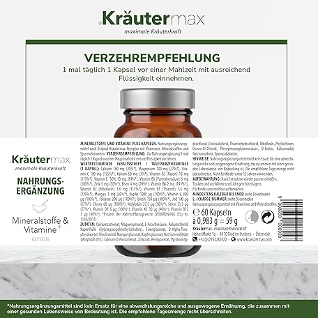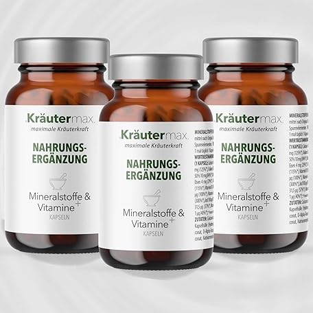 Vitamine und Mineralstoffe Kapseln | Multimineral und Multivitamin Tabletten mit Spurenelemente | nach Kräutermax Originalrezeptur | 3 x 60 Stück