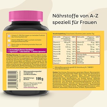 Sản phẩm Vitamins for Women Multivitamin Gummy Bears - A-Z Vitamins for Women High Dose - with Folic Acid + Vitamin A C E + B Complex + Biotin as well as Iodine + Zinc - Vegetarian Vitamin Gummies - Pack of 60 đang được bán với giá ưu đãi là $20.2849 tại nước Đức.