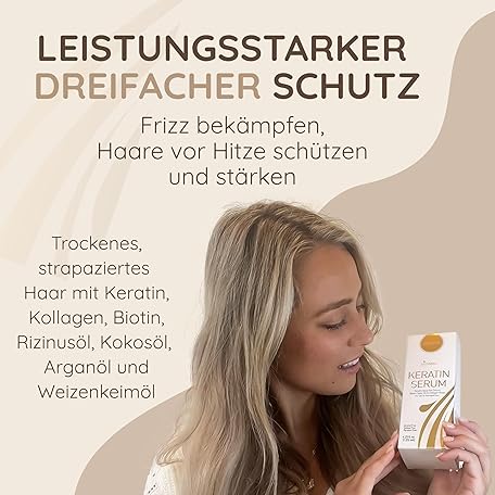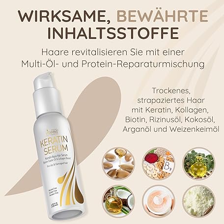Sản phẩm Vitamins Hair Serum Keratin Hair Care, Biotin, Collagen and Castor Oil Anti Frizz Hair Serum, Coconut Oil, Heat Protection Finish, Protein Treatment for Damaged Dry Hair đang được bán với giá ưu đãi là $32.9943 tại nước Đức.