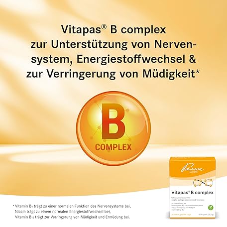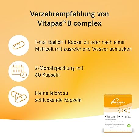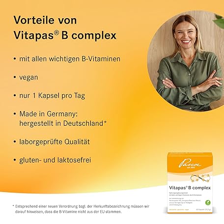 Sản phẩm Vitapas B Complex: Vitamin B Complex with All 8 Important B Vitamins (B1, B2, B3, B5, B6, B12), Biotin & Folic Acid - Energy & Strong Nerves - Vegan, Lactose & Gluten Free - 60 Capsules đang được bán với giá ưu đãi là $19.3584 tại nước Đức.