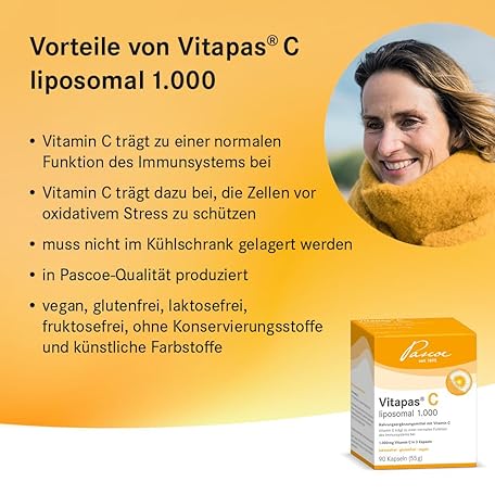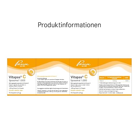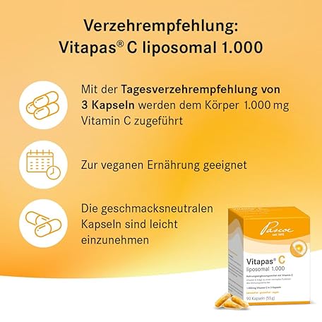 Sản phẩm Vitapas C Liposomal 1000: Dietary Supplement with Vitamin C - Lactose Free, Gluten Free, Vegan - 90 Capsules đang được bán với giá ưu đãi là $27.6097 tại nước Đức.