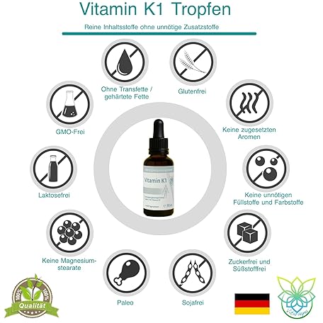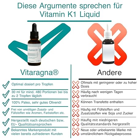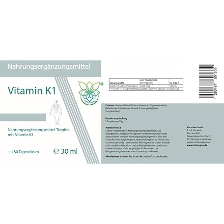 Sản phẩm VITARAGNA Vitamin K1 Drops Liquid, Phytomenadion K Drops - High Dose Liquid Dissolved in Olive Oil, 30 ml, 480 Daily Doses đang được bán với giá ưu đãi là $29.0594 tại nước Đức.
