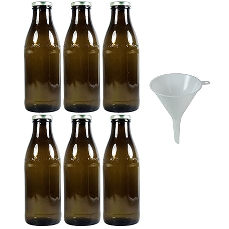 Thông tin sản phẩm Viva-Haushaltswaren Gabriele Hesse e.K. 6 Brown Milk Bottles 1 Litre with Screw Cap, Juice Bottle for Filling, Includes Funnel