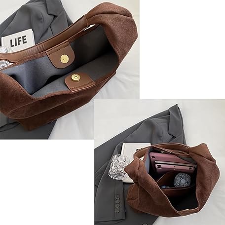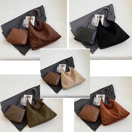 Thông tin sản phẩm VNDUIFH Suede Hobo Bag, Casual Bag for Women, Brown Suede Bag with Built-in Small Pocket, Suede Shopping Bag, Shopping Bags for Women