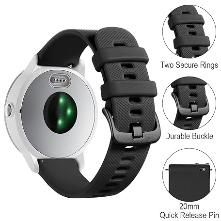 Sản phẩm Vobafe Garmin Bracelet 20 mm Compatible with Garmin Vivoactive 3/Venu 2 Plus/Venu sq/Vivomove HR, Soft Silicone Wristbands Sport Replacement Strap for Garmin Fenix 7S/Forerunner 55/245/645 Music đang được bán với giá ưu đãi là $10.2133 tại nước Đức.