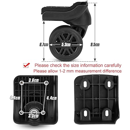 Thông tin sản phẩm Volein Suitcase Replacement Wheels Black Suitcase Wheels Swivel Wheels Luggage Wheels with 4 Screw Holes, V044-b, 2 pairs, Suitcase replacement wheels