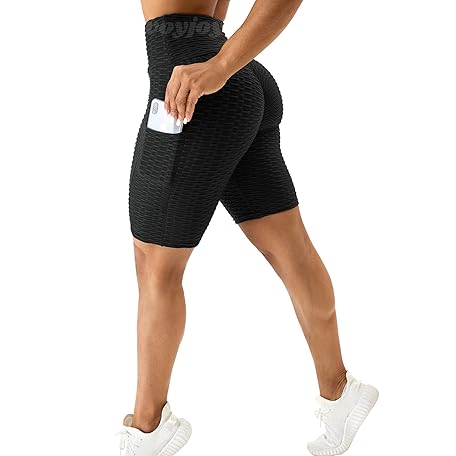 VOYJOY Damen Yoga Shorts Bauchweg Bubble Hip Lift Workout Pants Mode Hohe Taille Kurz - Schwarz - L Kurze Schlauch
