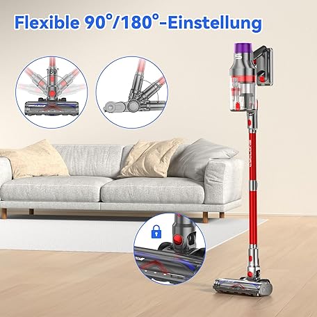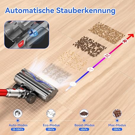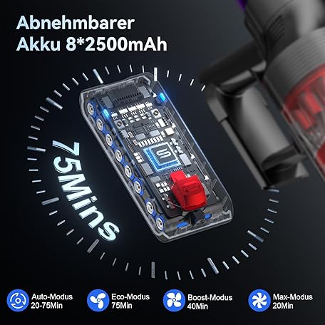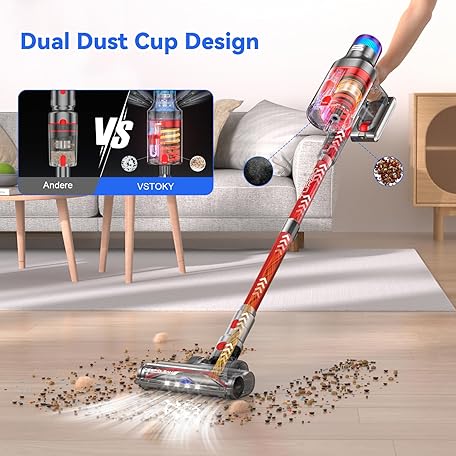 Thông tin sản phẩm VSTOKY V15 ProMax Wireless Vacuum Cleaner 75 min 600 W 58 KPa, Battery Vacuum Cleaner Freestanding with Double Dust Container, Automatic Mode, Battery Vacuum Cleaner for Carpets, Hard Floors, Pet Hair