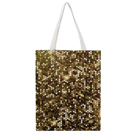 VYJLOO Gold Glitzer Damen Shopper Canvas Handtasche Einkaufstasche Tragetasche Schultertasche Umhängetaschen 38×46cm
