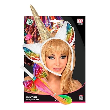 W WIDMANN MILANO Party Fashion - Verkleidungsset Einhorn, Haarreif und Schwanz, Fabelwesen, Unicorn, Mottoparty, Karneval