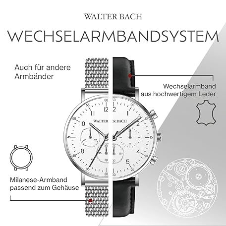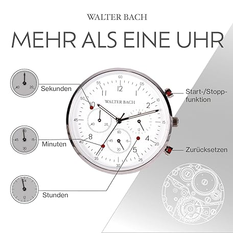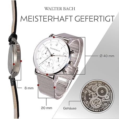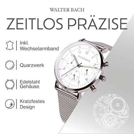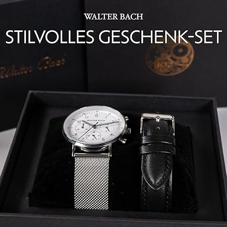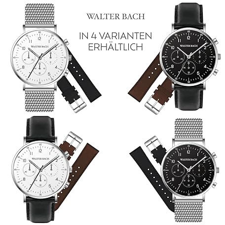 Thương hiệu Walter Bach là cái tên nổi tiếng được rất nhiều khách hàng trên thế giới chọn lựa. Với kiểu dáng đẹp mắt, sang trọng, sản phẩm Walter Bach Herren Uhr mit Chronograph Quarzwerk I Armbanduhr Herren mit schwarzem & weißem Ziffernblatt & Leder-Wechselarmband I 40 mm Durchmesser & gehärtetes Mineralglas I Uhr Herren in Geschenkbox là sự lựa chọn hoàn hảo nếu bạn đang tìm mua một món cho riêng mình.