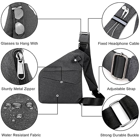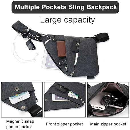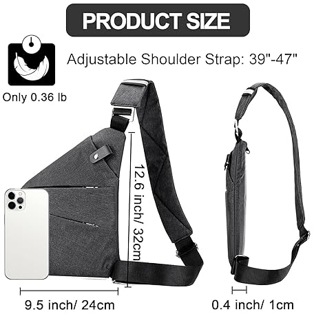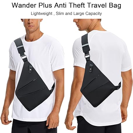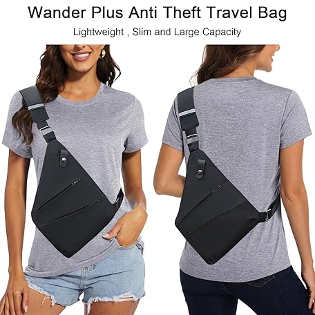Thông tin sản phẩm Wander Plus Anti-Theft Bag, Slim Shoulder Bag, Shoulder Bag, Travel Bag, Lightweight Chest Shoulder Backpack for Men and Women, black
