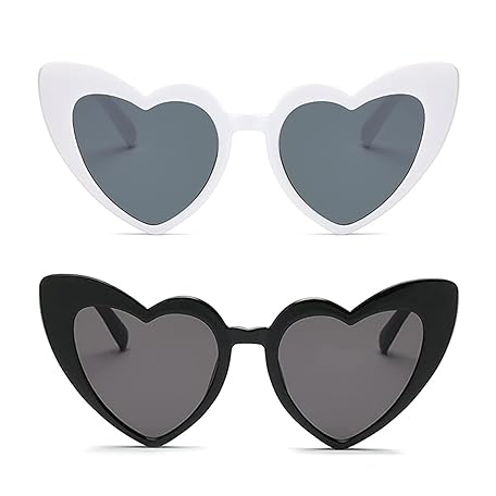 • WanderGo Herzförmige Sonnenbrille, 2 Stück, UV400-Schutz, Retro-Brille für Autofahren/Party/Outdoor-Aktivitäten, Weiß/Schwarz