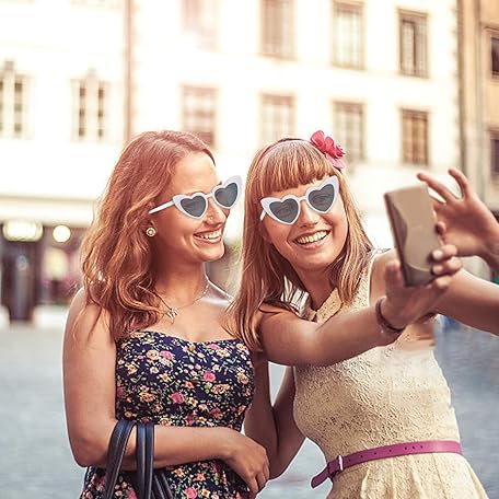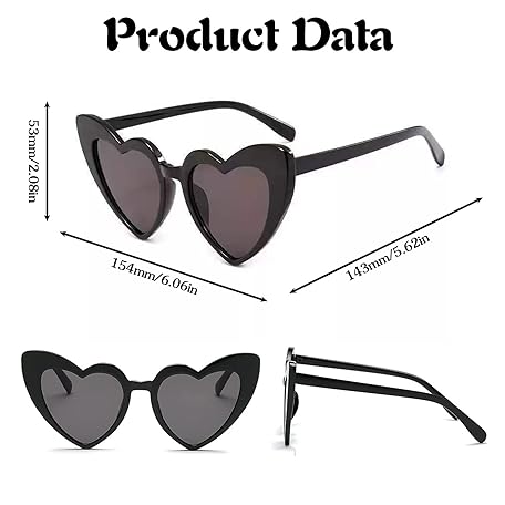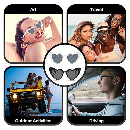 Thông tin sản phẩm WanderGo Herzförmige Sonnenbrille, 2 Stück, UV400-Schutz, Retro-Brille für Autofahren/Party/Outdoor-Aktivitäten, Weiß/Schwarz