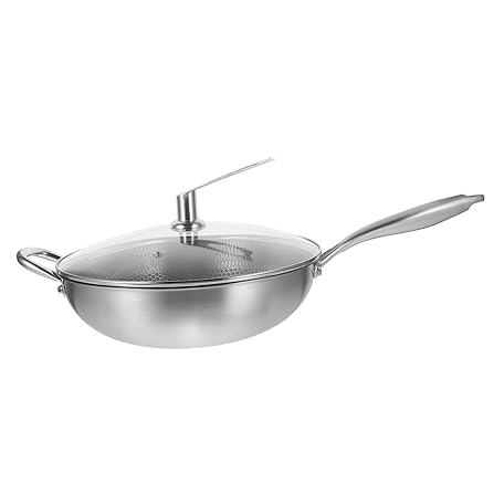 Warmhm Edelstahl Wok Pfanne Mit Deckel Honeycomb Wok Braten Für Induktionsherd Elektroherd Gasherd Antihaft Küchenzubehör Leicht Zu Reinigen