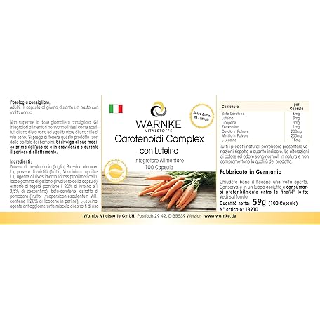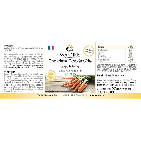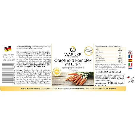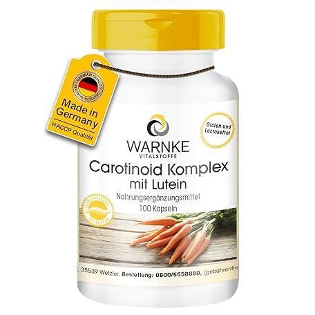 Thông tin sản phẩm WARNKE Health Products Carotenoid Complex with Lutein, Zeaxanthin, Beta Carotene and Lycopin, 100 Capsules (62g)