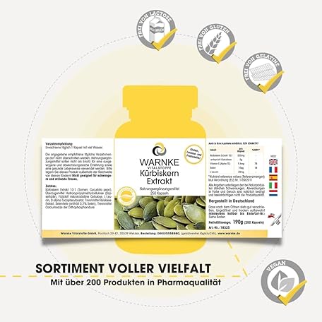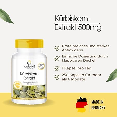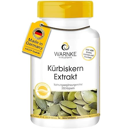 Sản phẩm WARNKE Health Products Pumpkin Seed Extract 10: 1, 500 mg, with Natural Vitamin E and Selenium, 250 Capsules, Value Pack, 1 Pack (1 x 190 G) đang được bán với giá ưu đãi là $34.2914 tại nước Đức.