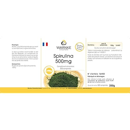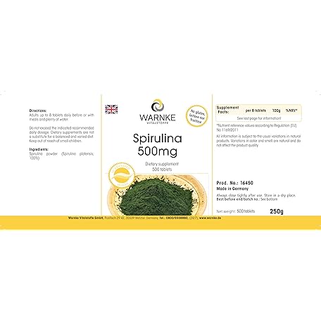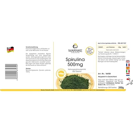 Thông tin sản phẩm WARNKE Health Products Spirulina, 500 mg, 500 Tablets, Spirulina Algae Powder, Chlorophyll, Pure Powder No Additives, – vegi 0.25 kg (Pack of 1)