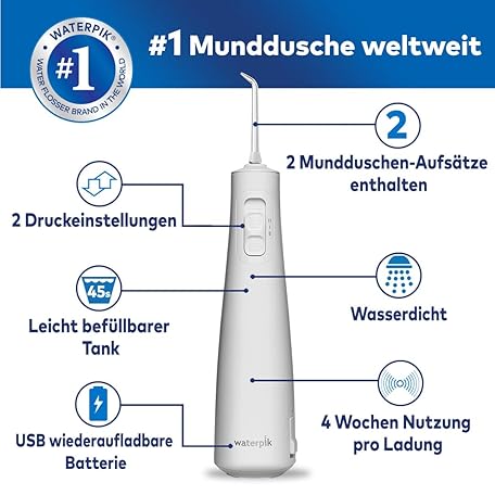Sản phẩm Waterpik Pulse Wireless Oral Irrigator, Professional 99.9% Plaque Removal, 2 x Intensity Modes, Interdental Cleaner, 45 Seconds Water Tank Capacity, 2 x Attachments Included, White đang được bán với giá ưu đãi là $70.3268 tại nước Đức.