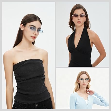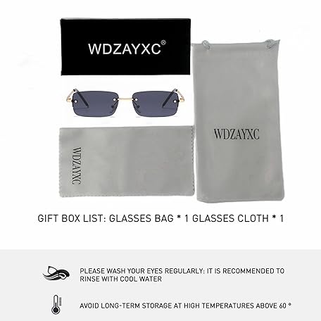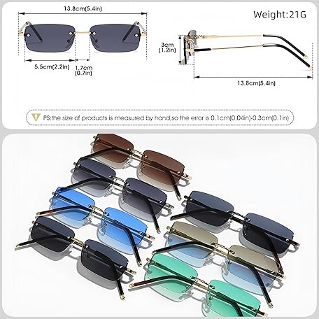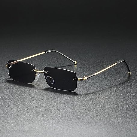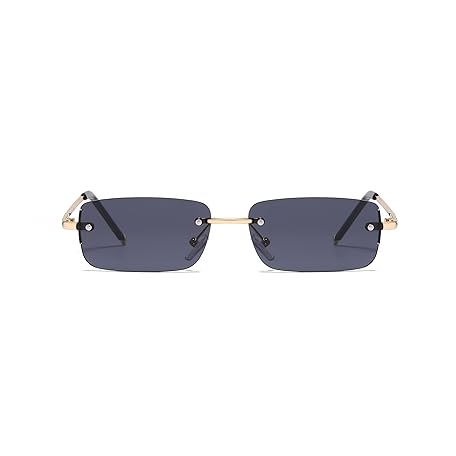 WDZAYXC Rectangular Retro Rimless Sunglasses for Men and Women, Metal Frame, Various Colours, UV400 Protection