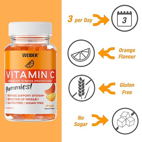Sản phẩm WEIDER Vitamin C Gummies, vitamin gummy bears, delicious fruit gummies, highly dosed, sugar-free, with natural flavours, orange taste, for immune system and cell protection, 28 portions đang được bán với giá ưu đãi là $8.1423 tại nước Đức.