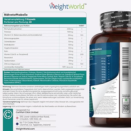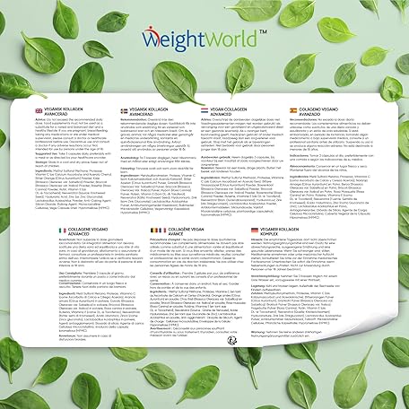 Thông tin sản phẩm WeightWorld Vegan Collagen Complex Capsules, With Hyaluronic Acid, Zinc, MSM, Vitamins C and E, Resveratrol, 180 Capsules, Boost for Skin, Hair, Nails and Collagen Formation in Body