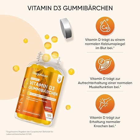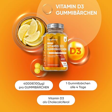 Sản phẩm WeightWorld Vitamin D3 Gummies 4000 IU - 120 Pieces with Lemon Flavour - 1 Vitamin Gummy Bear Every 4 Days - Sugar-Free, Vegetarian & No Gelatine - Vitamin D Dietary Supplement đang được bán với giá ưu đãi là $21.5602 tại nước Đức.