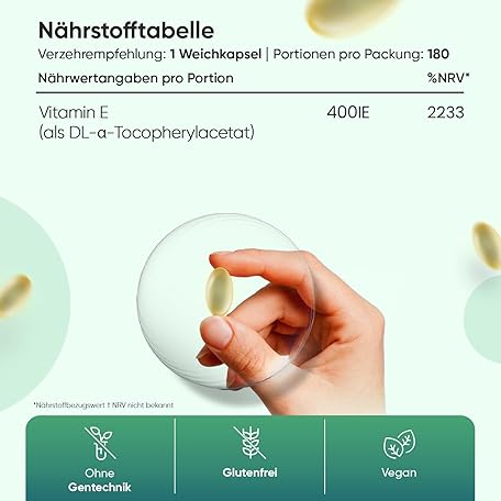 Sản phẩm WeightWorld Vitamin E 180 Soft Capsules 400 IU - 180 Vitamins Softgels - 6 Months Supply - Vitamin E Helps Protect Cells from Oxidative Stress - E Vitamin Oil Alpha Tocopheryl Acetate đang được bán với giá ưu đãi là $25.1027 tại nước Đức.