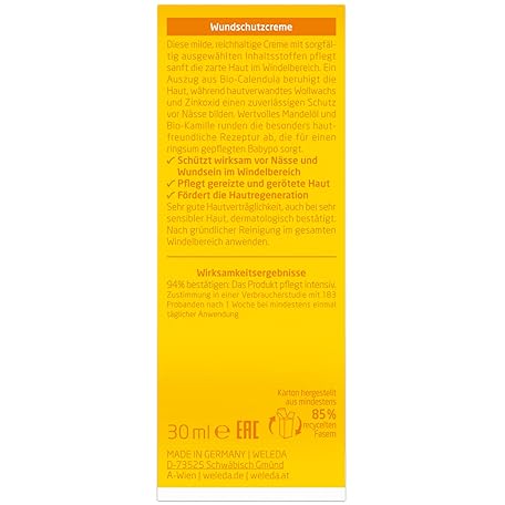 Thông tin sản phẩm Weleda Baby Calendula Wound protection cream/baby cream, 30 ml natural cosmetics Wound ointment for the protection of sensitive baby skin in the nappy area Helps with redness, irritated skin and soreness