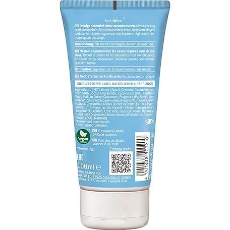 Thông tin sản phẩm WELEDA Organic Clarifying Wash Gel - Deep Pore Natural Cosmetics Anti Pimples Face Cleansing for Blemished Skin Face Care Fights Pimples / Blackheads & Reduces Excess Sebum (Vegan, 100 ml)