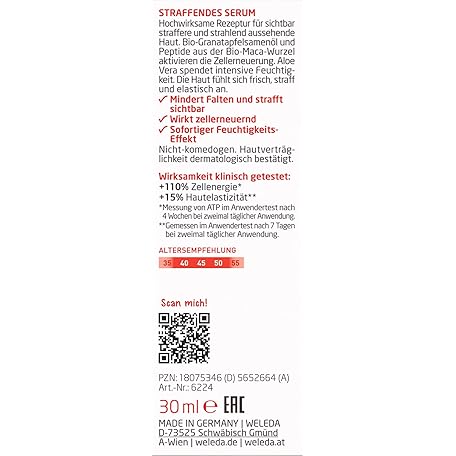 Thông tin sản phẩm WELEDA Organic Firming Serum - Natural Cosmetics Natural Anti-Ageing Face Care Concentrate with Pomegranate Seed Oil & Maca Peptides. Face Serum Reduces Wrinkles, Moisturises & Tightens (1 x 30 ml)
