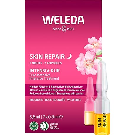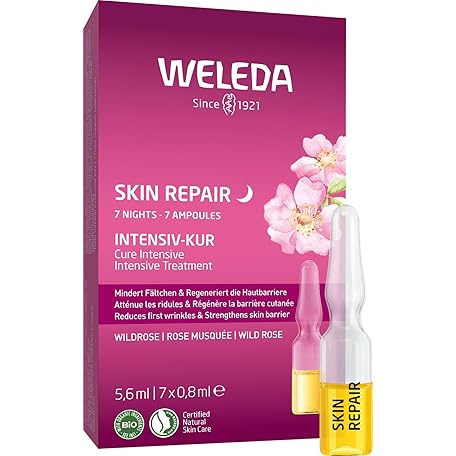 Thông tin sản phẩm WELEDA Organic Skin Repair Intensive Treatment Wild Rose - Natural Cosmetics Natural Aging Face Care 7 Day Treatment Regenerates the Skin Barrier for Visibly Smoother Skin (Vegan, 7 x 0.8 ml)
