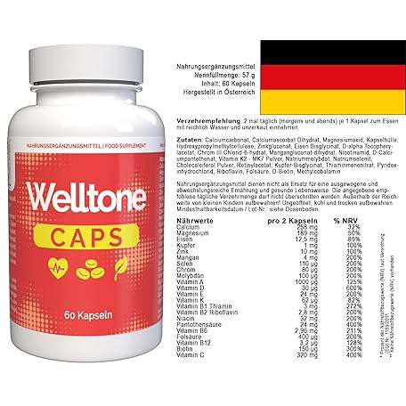 Sản phẩm Welltone - 120 Capsules (2 x 60 Capsules) - Pack of 2 đang được bán với giá ưu đãi là $55.1322 tại nước Đức.