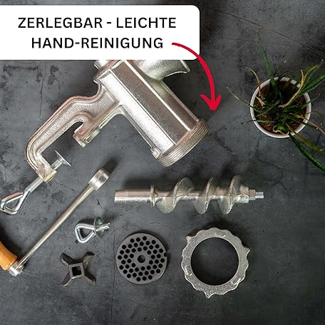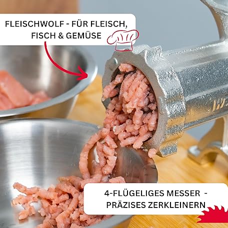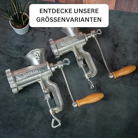 Thông tin sản phẩm Westmark Meat Mincer Set, 2 Pieces, 1 Mincer + 1 Biscuit Attachment, Size 8, Incl. 975222E6 Screw Clamp for Table Mounting, Tin-Plated Cast Steel/Stainless Steel/Wood, Silver