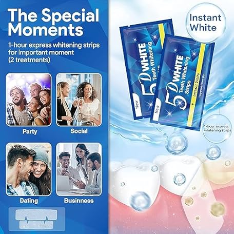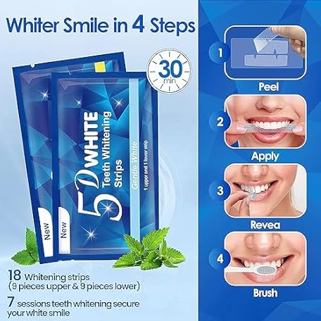 Thông tin sản phẩm Whitening Teeth Stripes Whitening Strips: 7x Teeth Whitening Strips Whitening Teeth Gentle, 2x Tooth Bleaching Stripes, White Teeth Immediately, Celakeety White Stripes Teeth, Tooth Enamel-Safe, No