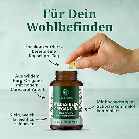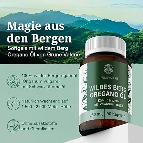 Sản phẩm Wild Mountain Oregano Oil & Black Cumin Oil Capsules [High Dosage, Laboratory Tested & No Additives] Pack of 90 - 82% Carvacrol Oregano Oil & Black Cumin Oil - 250 mg Softgels - Green Valerie đang được bán với giá ưu đãi là $31.7408 tại nước Đức.