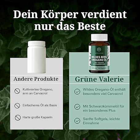 Thương hiệu Grüne Valerie Naturkosmetik là cái tên nổi tiếng được rất nhiều khách hàng trên thế giới chọn lựa. Với kiểu dáng đẹp mắt, sang trọng, sản phẩm Wild Mountain Oregano Oil & Black Cumin Oil Capsules [High Dosage, Laboratory Tested & No Additives] Pack of 90 - 82% Carvacrol Oregano Oil & Black Cumin Oil - 250 mg Softgels - Green Valerie là sự lựa chọn hoàn hảo nếu bạn đang tìm mua một món cho riêng mình.