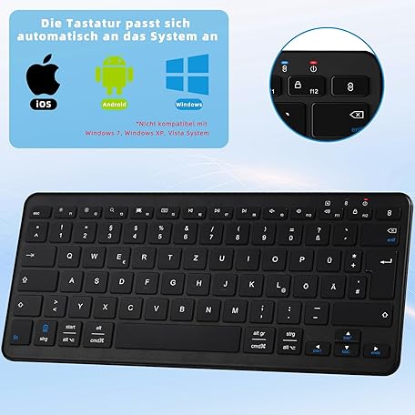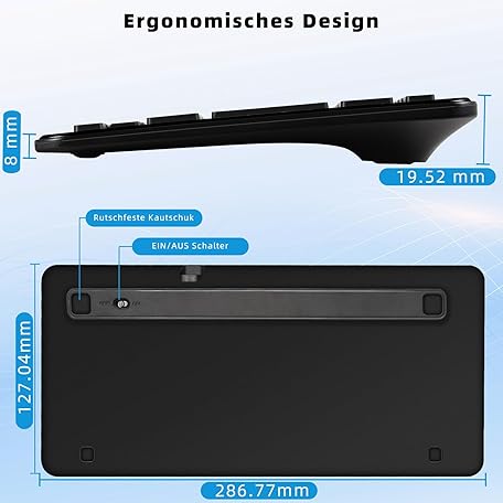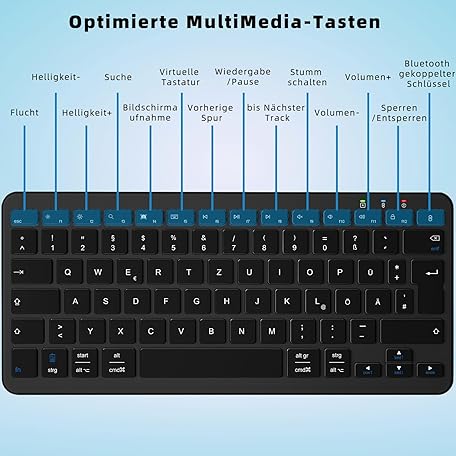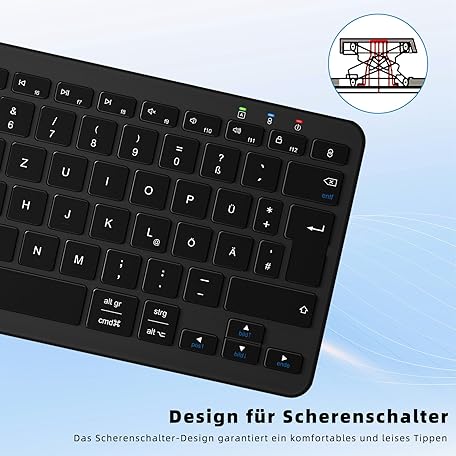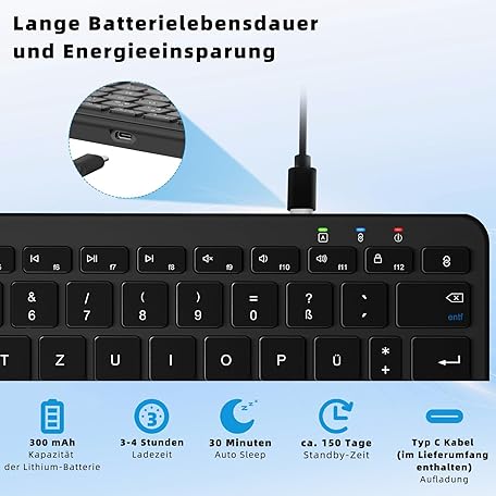 Thông tin sản phẩm Wireless Bluetooth Keyboard, Rechargeable Mini Type-C, Radio, Ultraslim Ergonomic Design, German QWERTZ Layout, for Android/iOS/Windows 11/10/8