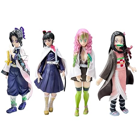 WlsqDE 4pcs Demon Figure, Demon Figures Set, Anime Figures, Model Sculpture, Collectible Decoration, from Nezuko + Tsuyuri Kanao + Kochou Shinobu + Mitsuri, for Fan Collections Gifts