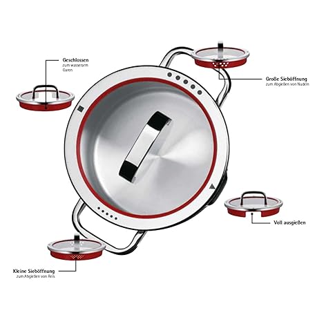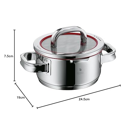 Thông tin sản phẩm WMF cookware Ø 16 cm approx. 1,4l Function 4 Inside scaling lid - pour off or decant liquids without spilling to keep your dishes and cooker clean. Hollow side handles glass lid Cromargan stainless steel brushed suitable for all stove tops including induction dishwasher-safe