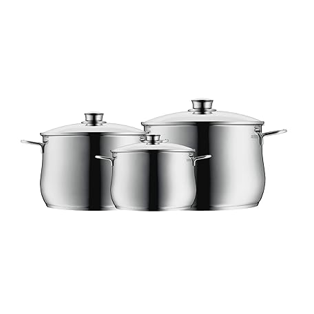 Thương hiệu WMF là cái tên nổi tiếng được rất nhiều khách hàng trên thế giới chọn lựa. Với kiểu dáng đẹp mắt, sang trọng, sản phẩm WMF Diadem Plus Topfset Induktion 3-teilig, Kochtopf Set mit Glasdeckel, Cromargan Edelstahl poliert, Induktions Töpfe Set unbeschichtet là sự lựa chọn hoàn hảo nếu bạn đang tìm mua một món cho riêng mình.