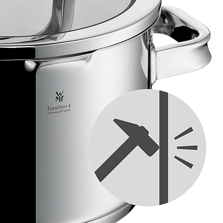 Thông tin sản phẩm WMF Function 4 Advanced Cooking Pot Large 20 cm, Glass Lid, Induction Casserole Pot 3.4 L, Polished Cromargan Stainless Steel, 4 Pouring Functions, Inner Scale, Silver