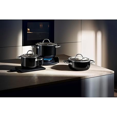 Thông tin sản phẩm WMF Fusiontec Inspire Induction 3-Piece Saucepan Set with Glass Lid, Induction Pots Set, High-Tech Ceramic, Scratch-Resistant, Uncoated, Black, Made in Germany