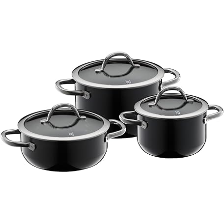 Thương hiệu WMF là cái tên nổi tiếng được rất nhiều khách hàng trên thế giới chọn lựa. Với kiểu dáng đẹp mắt, sang trọng, sản phẩm WMF Fusiontec Inspire Induction 3-Piece Saucepan Set with Glass Lid, Induction Pots Set, High-Tech Ceramic, Scratch-Resistant, Uncoated, Black, Made in Germany  là sự lựa chọn hoàn hảo nếu bạn đang tìm mua một món  cho riêng mình.