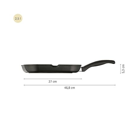 Thông tin sản phẩm WMF Grillpfanne 27 x 27 cm mit Ausguss, Steakpfanne gerillt, nicht induktionsgeeignet, Aluminium beschichtet, Grill Pfanne ideal zum knusprigen Braten, eckige Pfanne, Kunststoffgriff mit Flammschutz