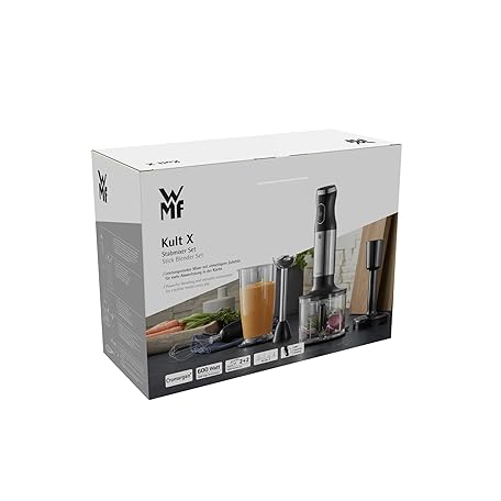 Thương hiệu WMF là cái tên nổi tiếng được rất nhiều khách hàng trên thế giới chọn lựa. Với kiểu dáng đẹp mắt, sang trọng, sản phẩm WMF Kult X Hand Blender Set 5 Pieces Purée Whisk Masher Chopper 600 Watt Magic Wand with 700 ml Mixing Container Matte Stainless Steel là sự lựa chọn hoàn hảo nếu bạn đang tìm mua một món cho riêng mình.
