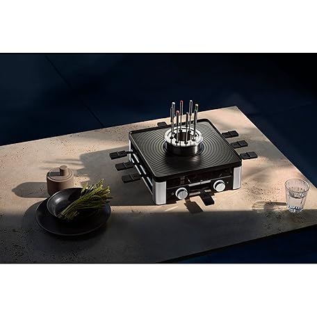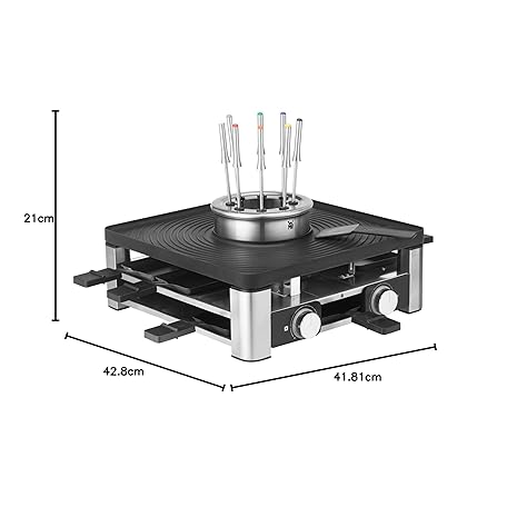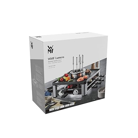 Thông tin sản phẩm WMF Lumero 3-in-1 Gourmet Station for 8 People, Raclette Grill Fondue, Electric, Temperature Regulation, Lighting, 1800 Watt, Space Saving, Matt Stainless Steel