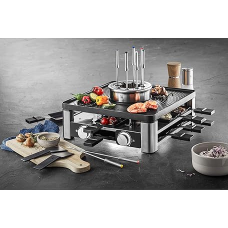 Sản phẩm WMF Lumero 3-in-1 Gourmet Station for 8 People, Raclette Grill Fondue, Electric, Temperature Regulation, Lighting, 1800 Watt, Space Saving, Matt Stainless Steel đang được bán với giá ưu đãi là $187.0985 tại nước Đức.